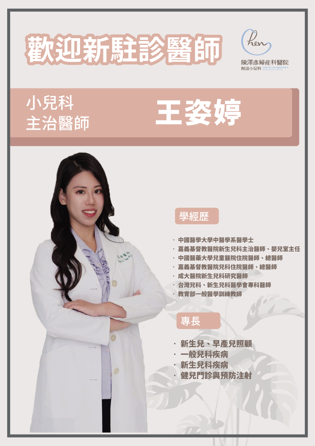 歡迎小兒科新駐診醫師- 王姿婷醫師 加入醫療團隊